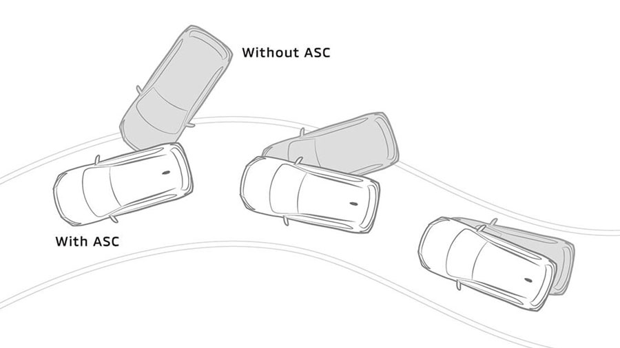 Hệ thống cân bằng điện tử (ASC): Sử dụng các cảm biến để phân tích chuyển động và độ trượt của xe. Bằng cách kiểm soát công suất động cơ và lực phanh lên từng bánh xe riêng biệt, hệ thống ASC giúp duy trì sự ổn định của xe ngay cả trong điều kiện trơn trượt.