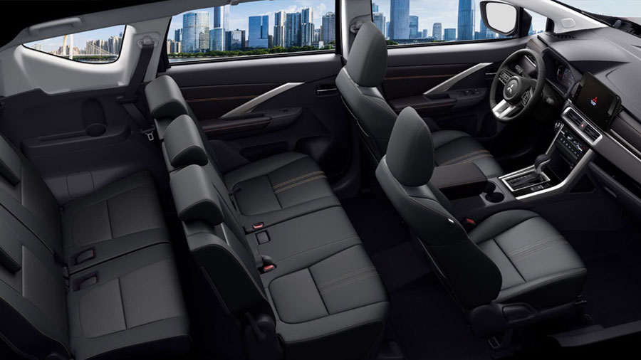 Nội thất Mitsubishi Xpander 2025 mới, Không gian 7 chỗ trang bị đẳng cấp với chất liệu da mềm cao cấp, cùng phối màu mới cho cảm giác sang trọng, thoải mái.